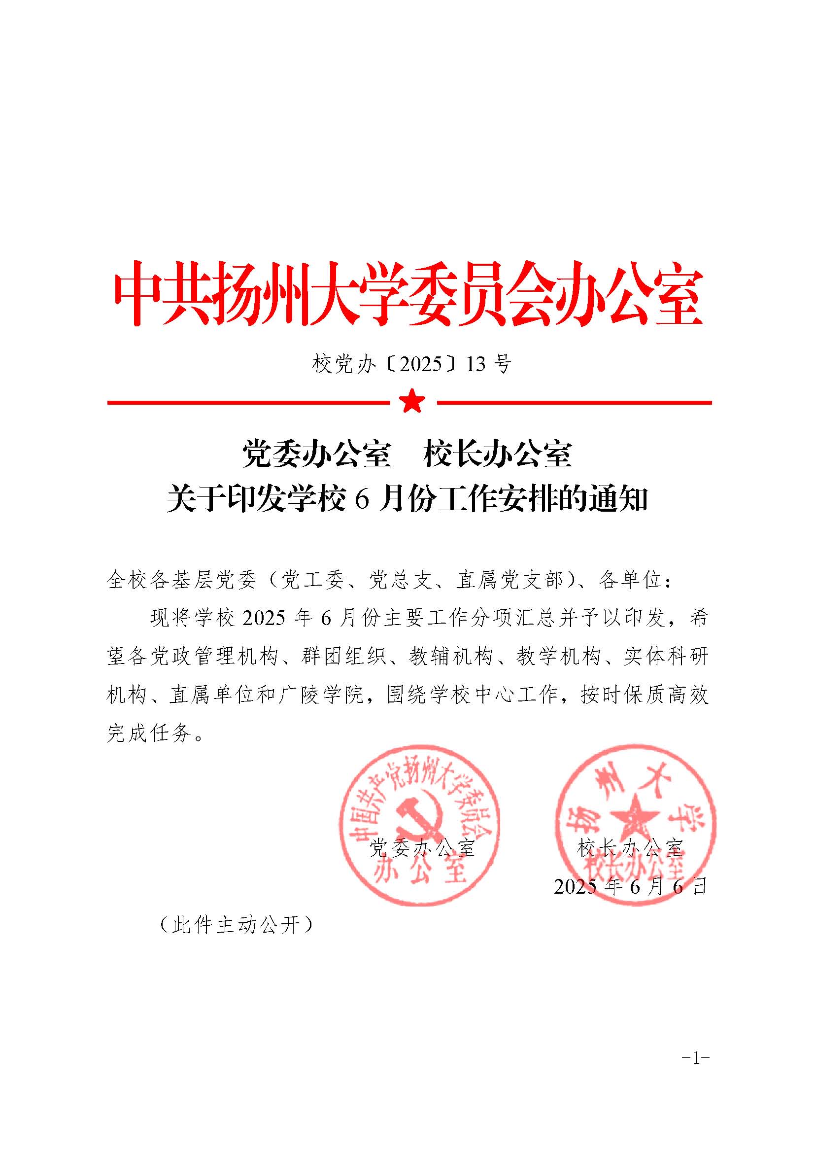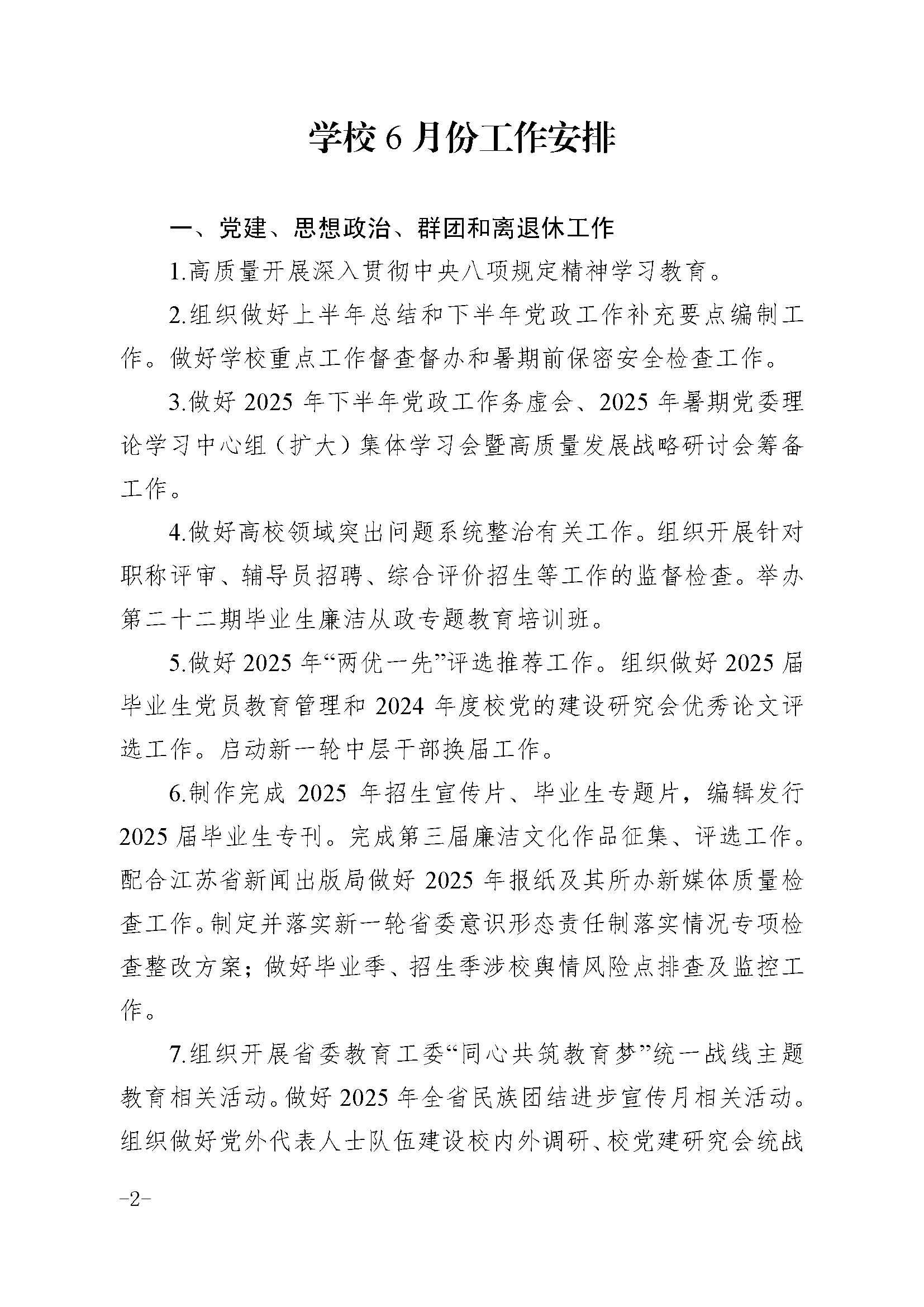 党委办公室 校长办公室关于印发学校6月份工作安排的通知