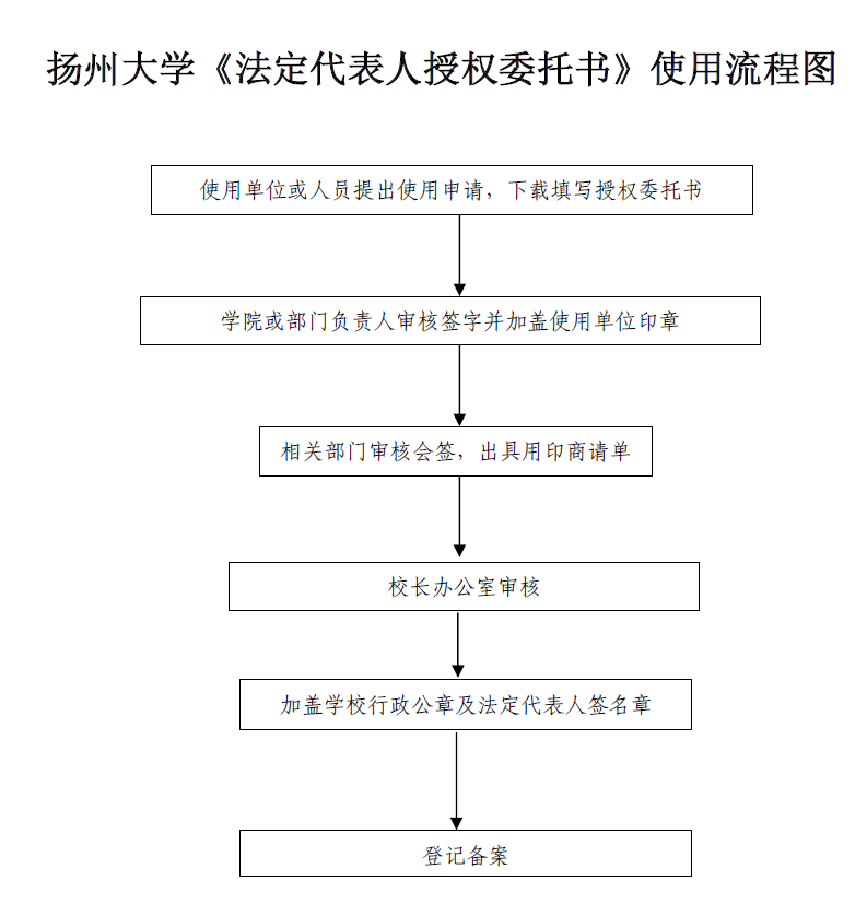 扬州大学《法定代表人授权委托书》使用流程图