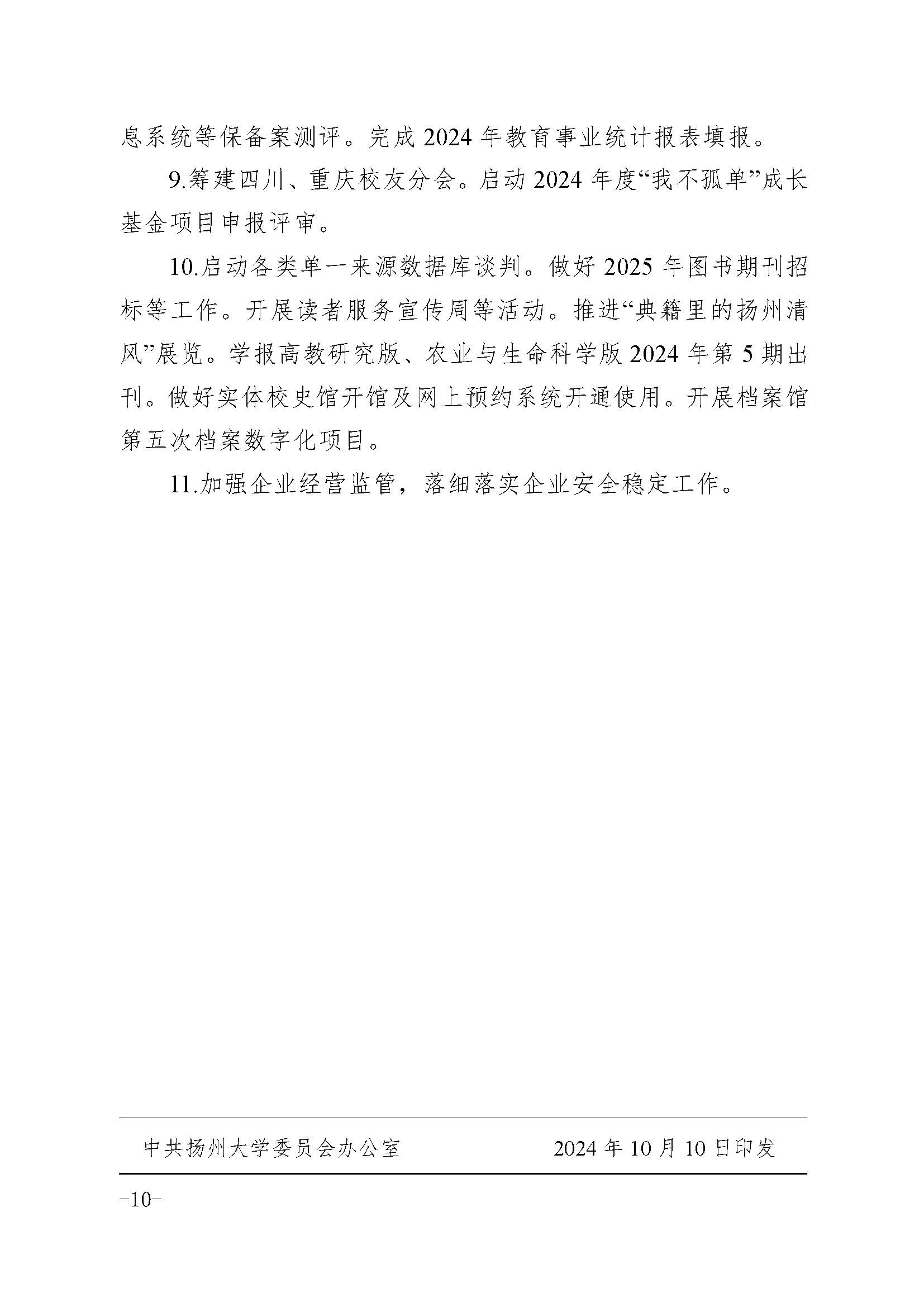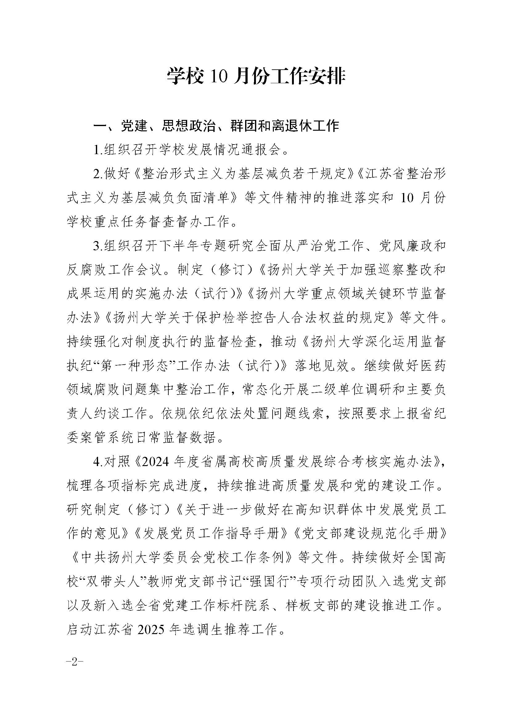 党委办公室校长办公室关于印发学校10月份工作安排的通知