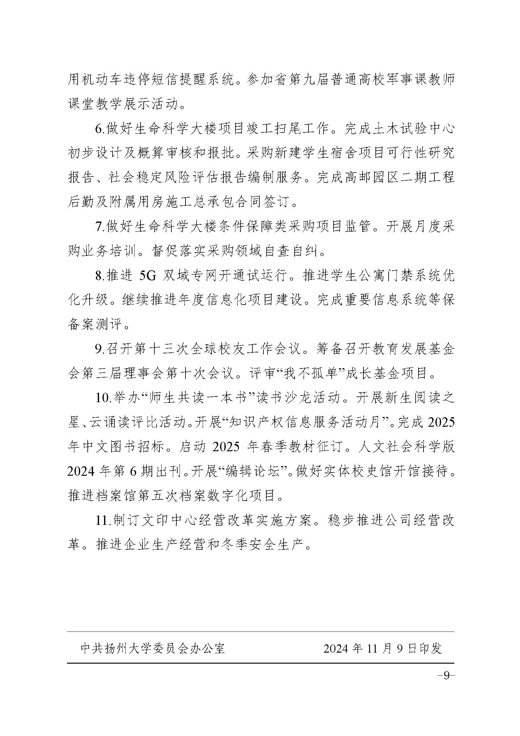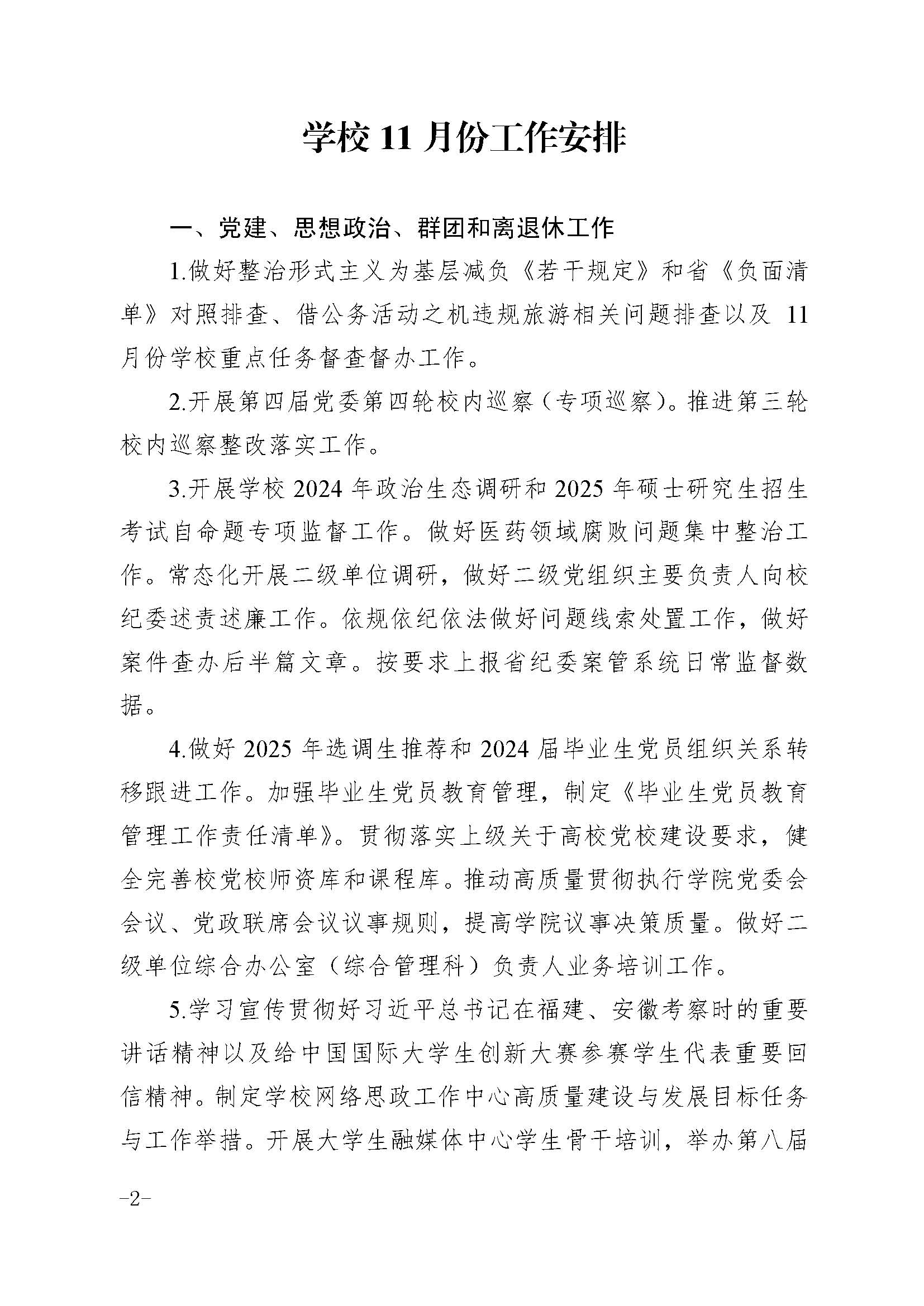 党委办公室校长办公室关于印发学校11月份工作安排的通知