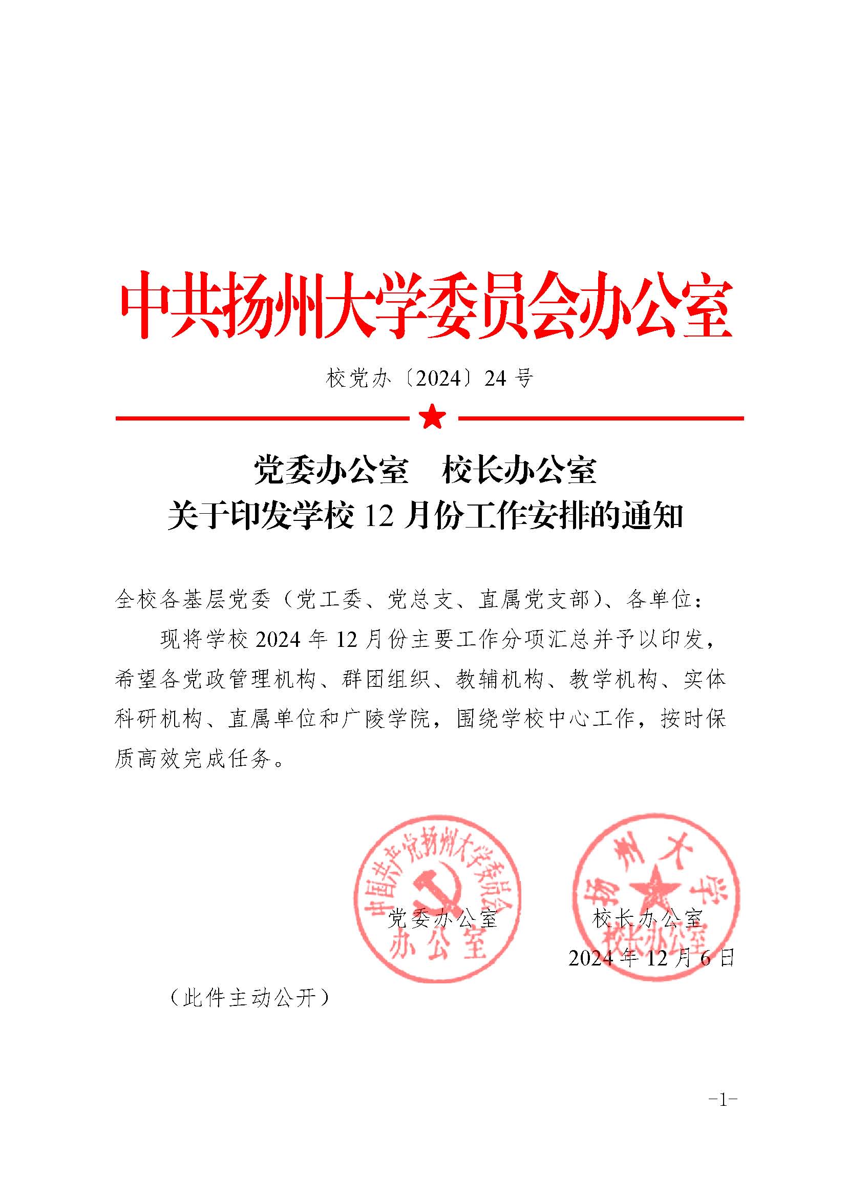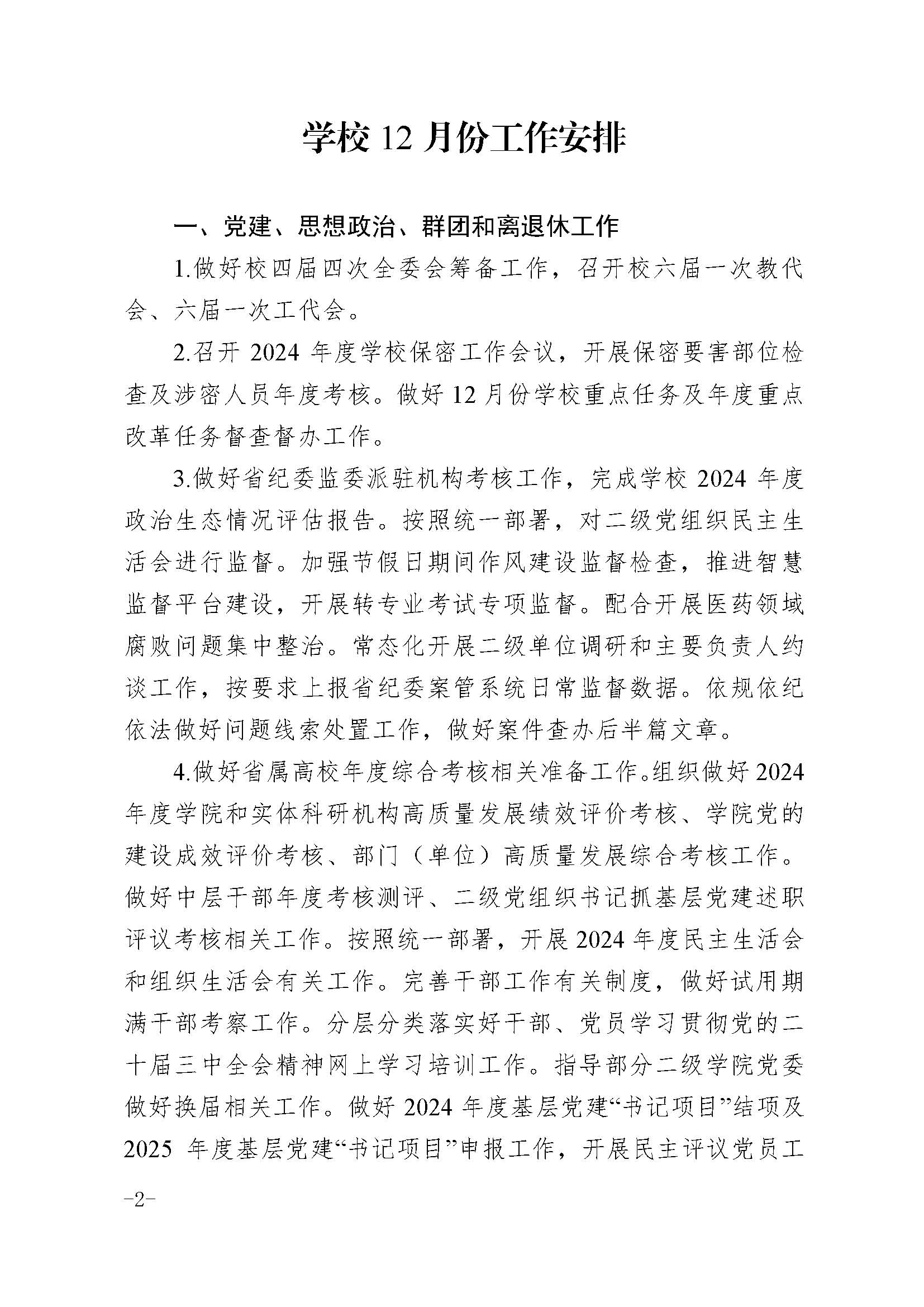 党委办公室校长办公室关于印发学校12月份工作安排的通知_