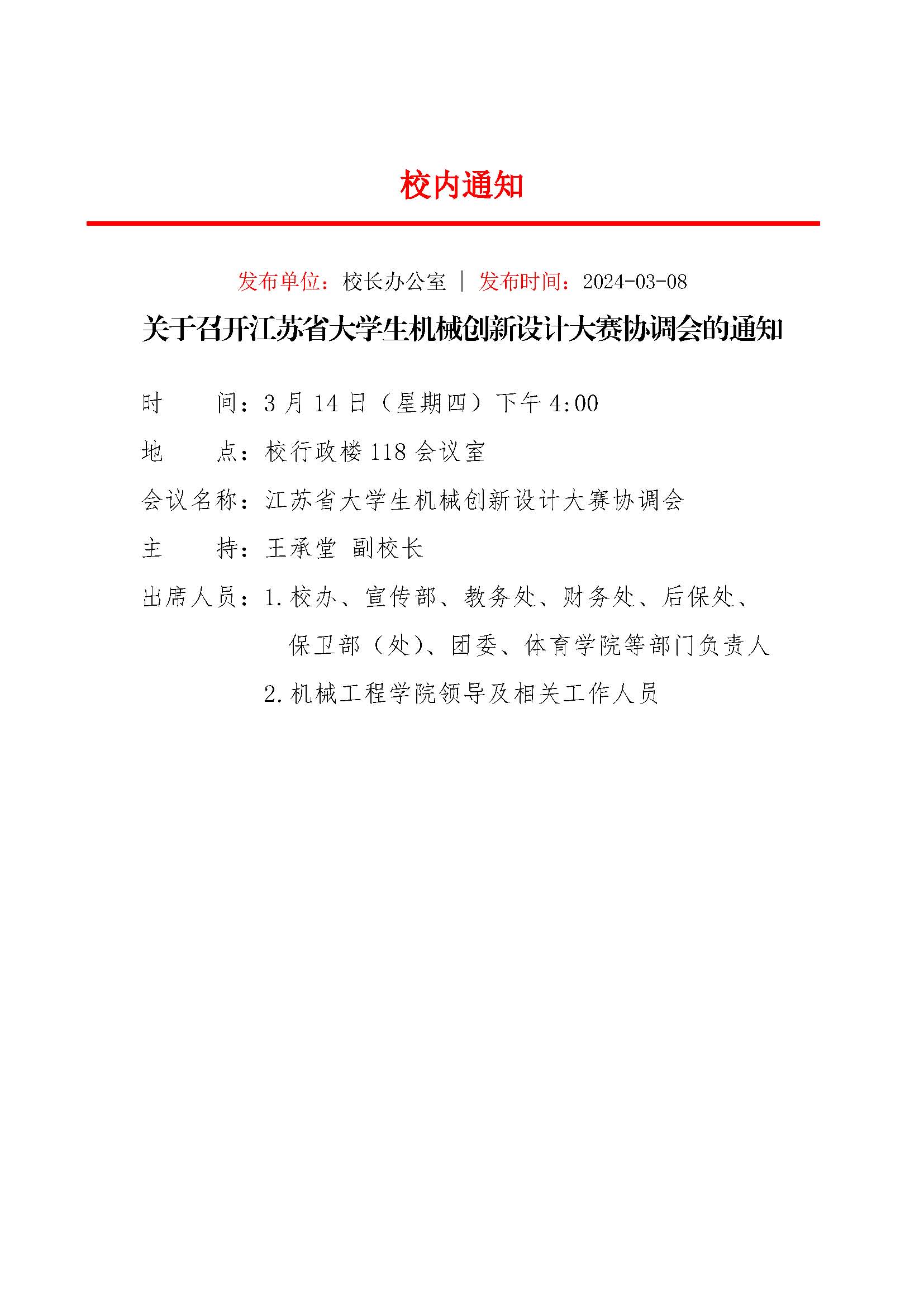 关于召开江苏省大学生机械创新设计大赛协调会的通知