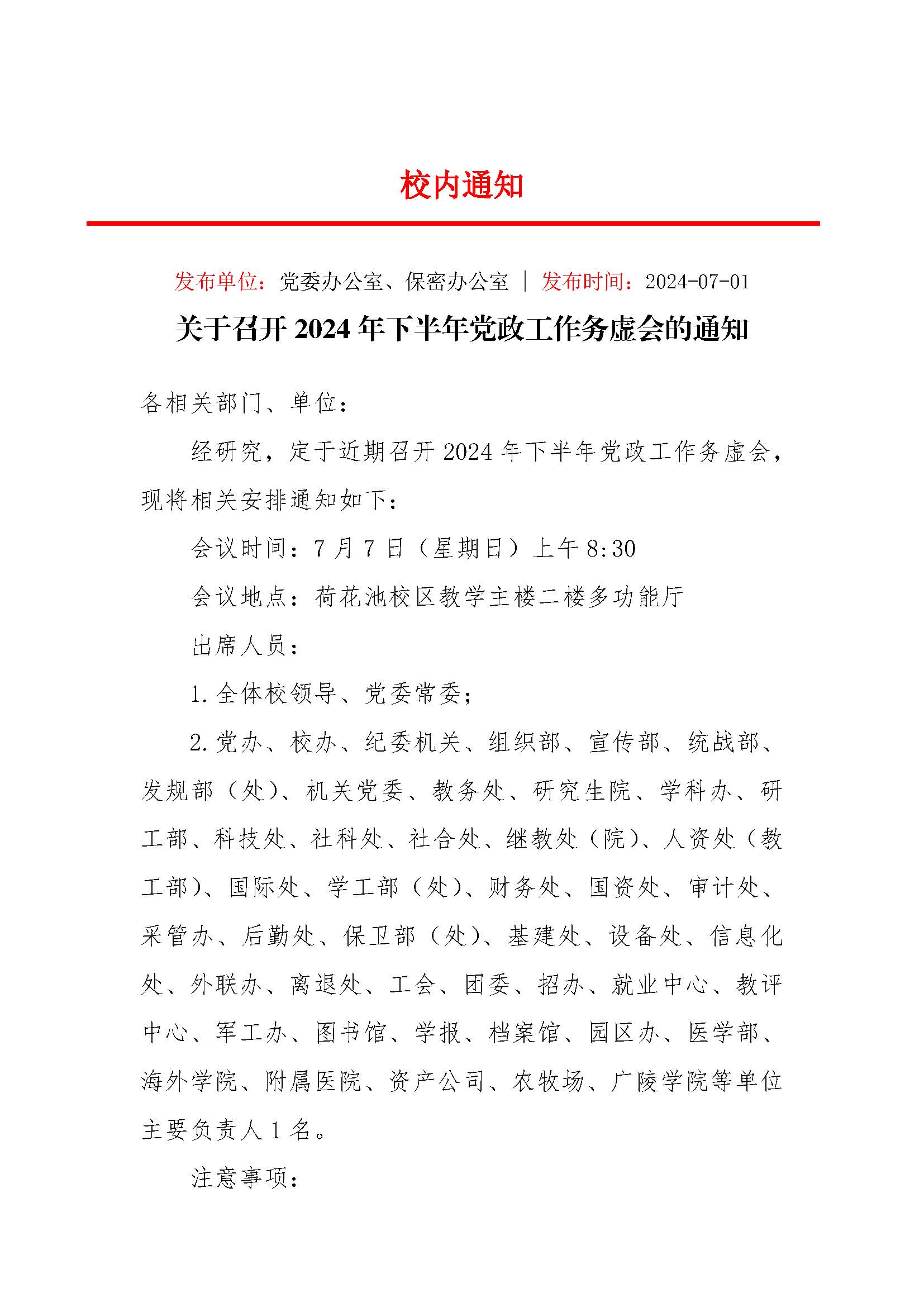 关于召开2024年下半年党政工作务虚会的通知