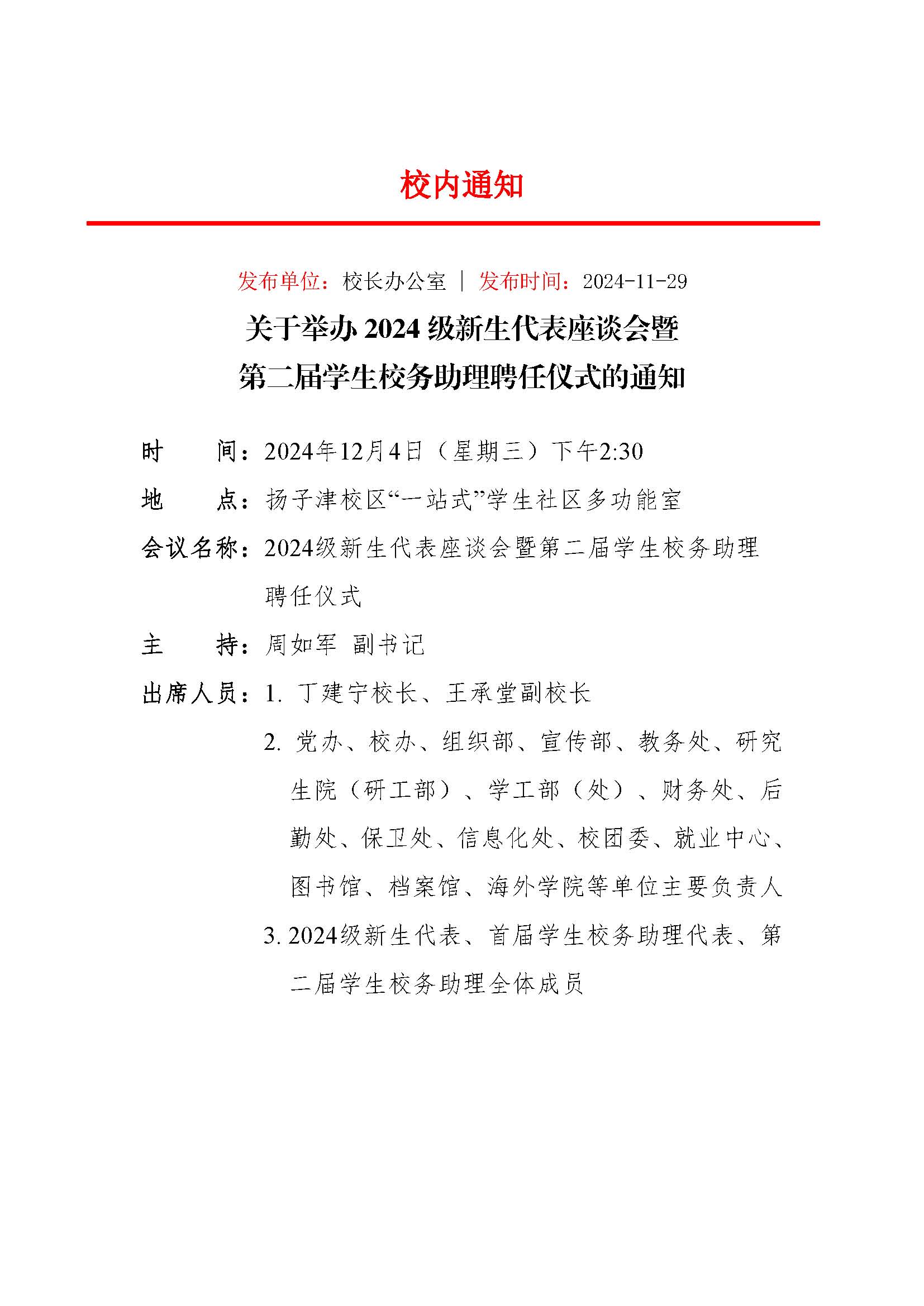 关于举办2024级新生代表座谈会暨第二届学生校务助理聘任仪式的通知