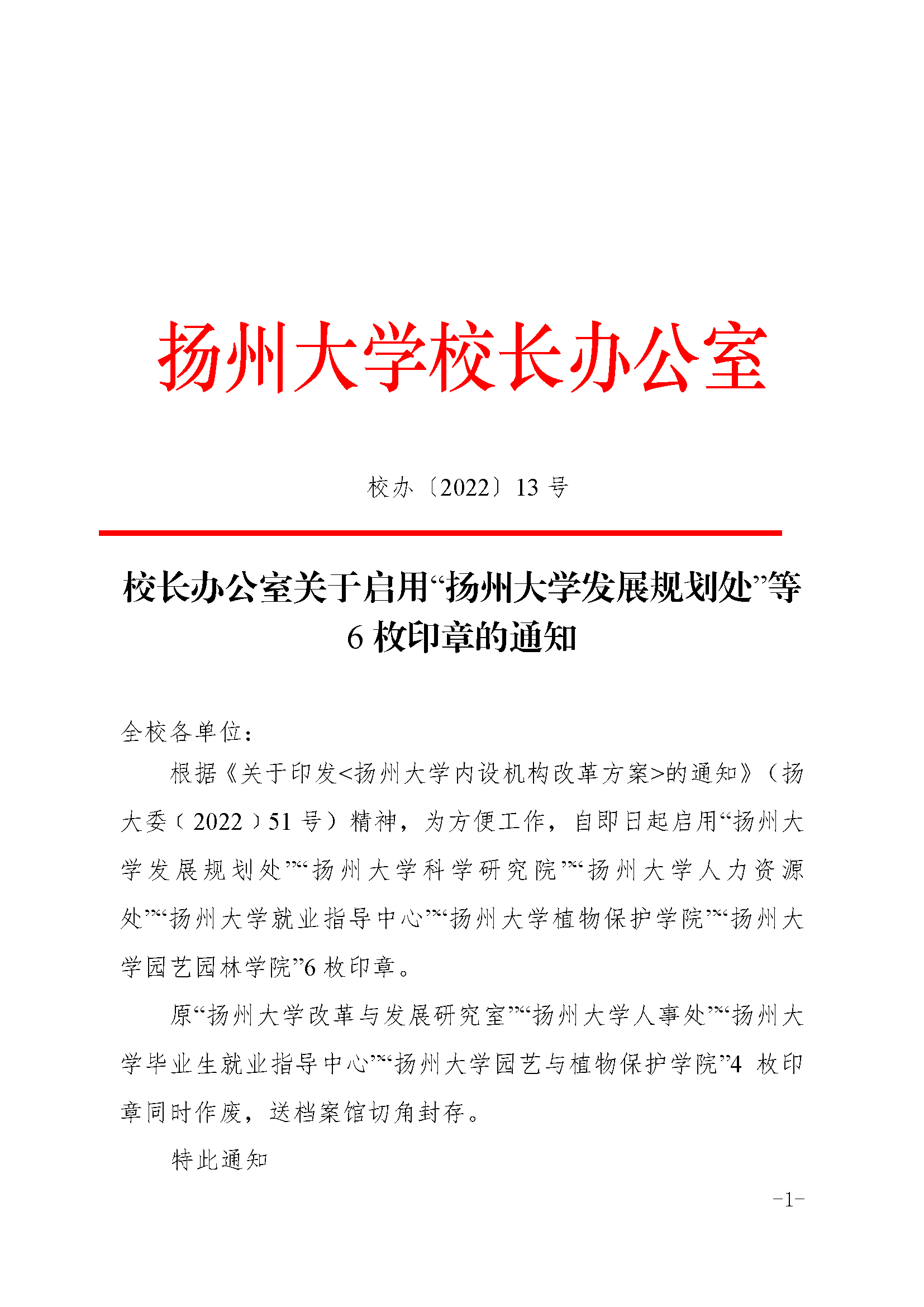 校长办公室关于启用“扬州大学发展规划处”等6枚印章的通知