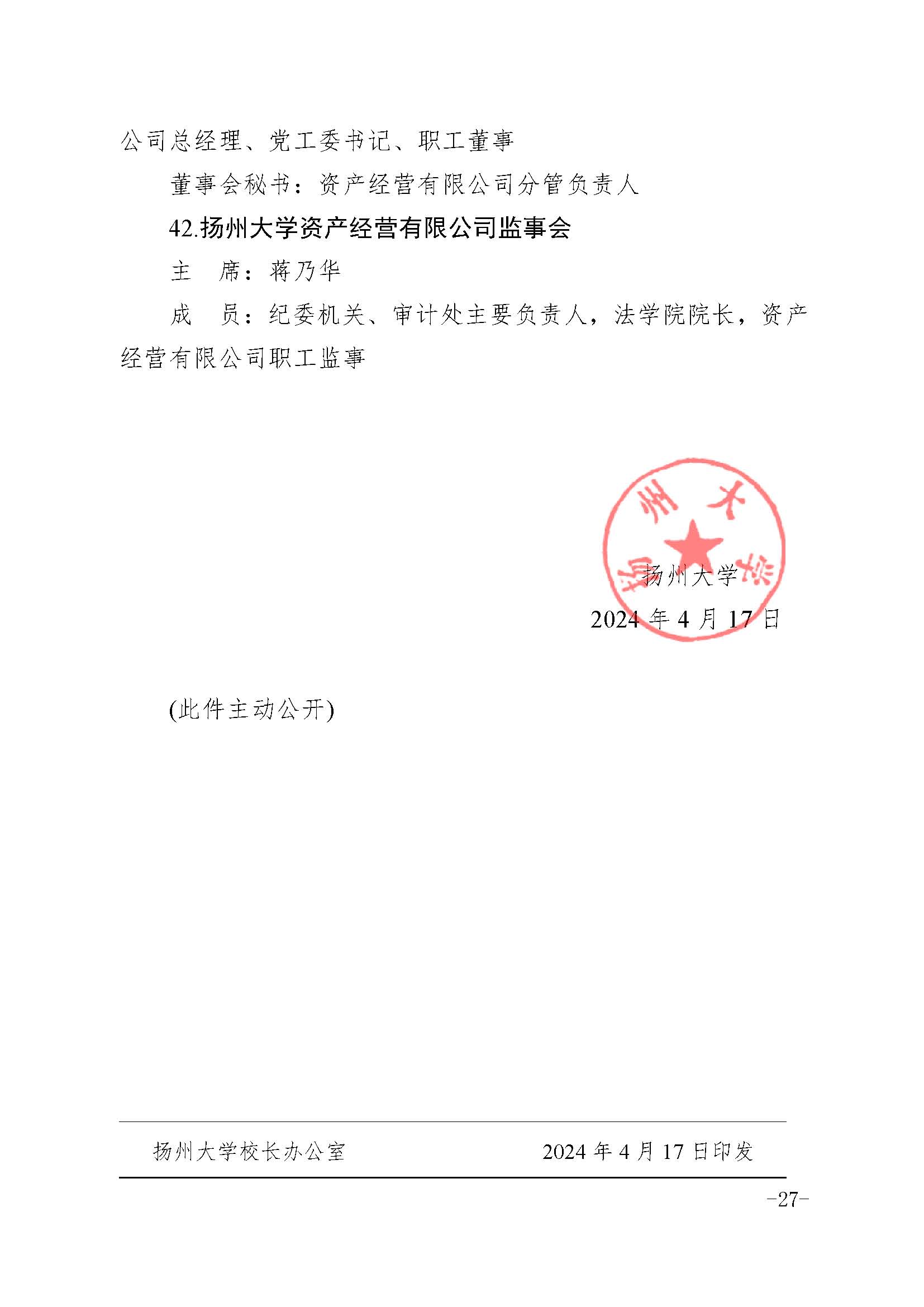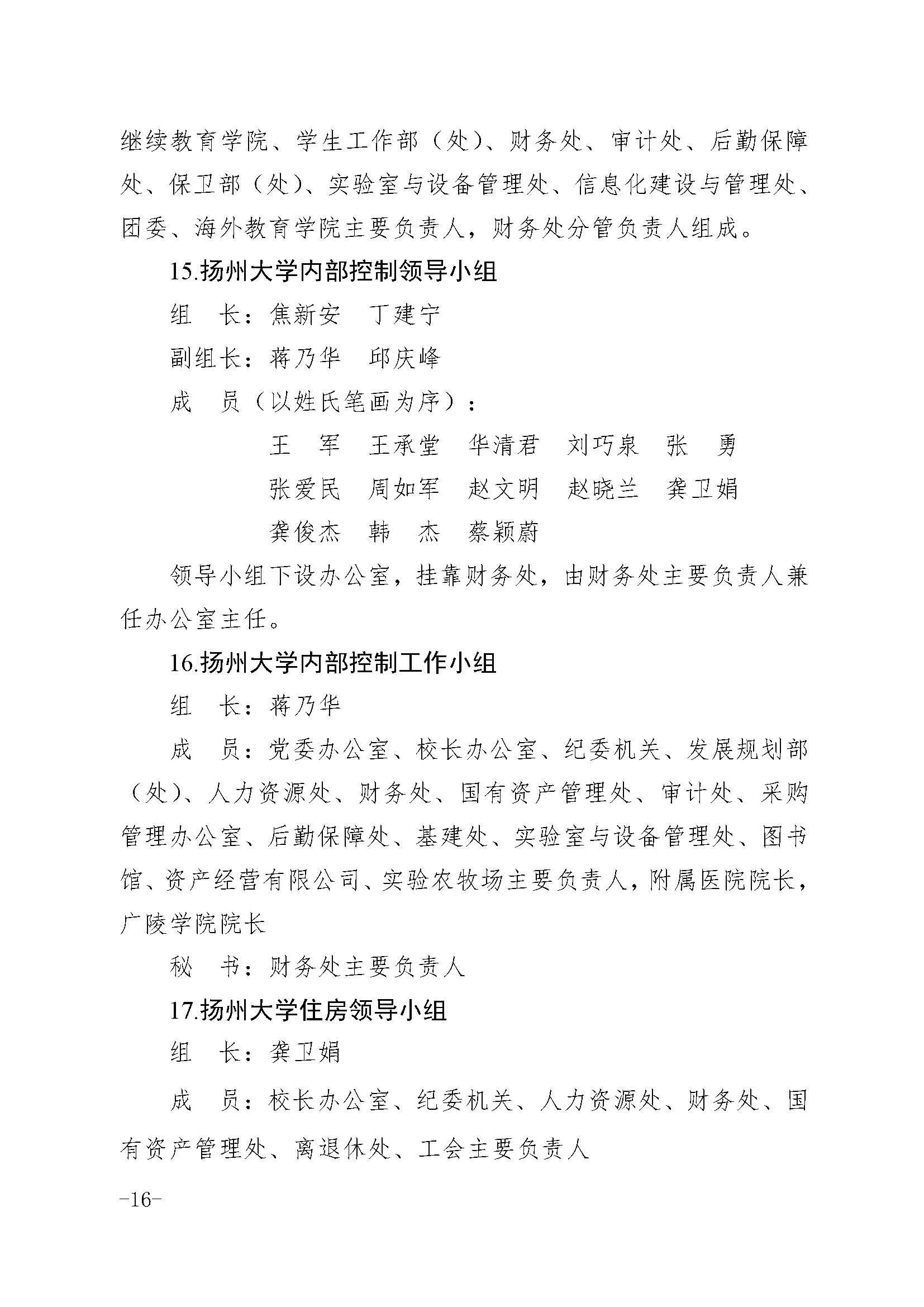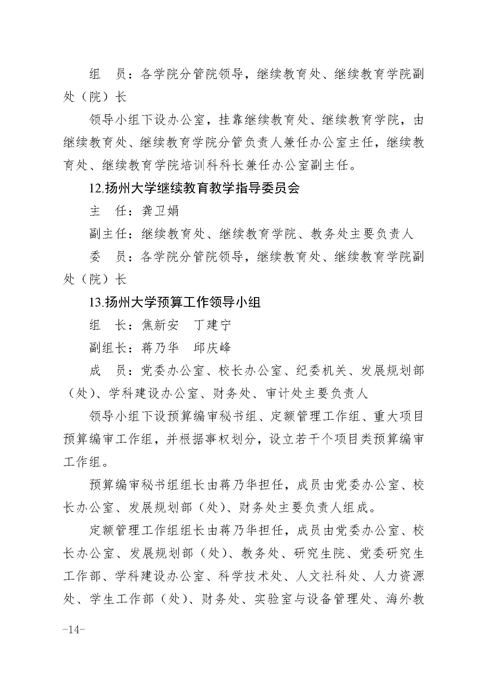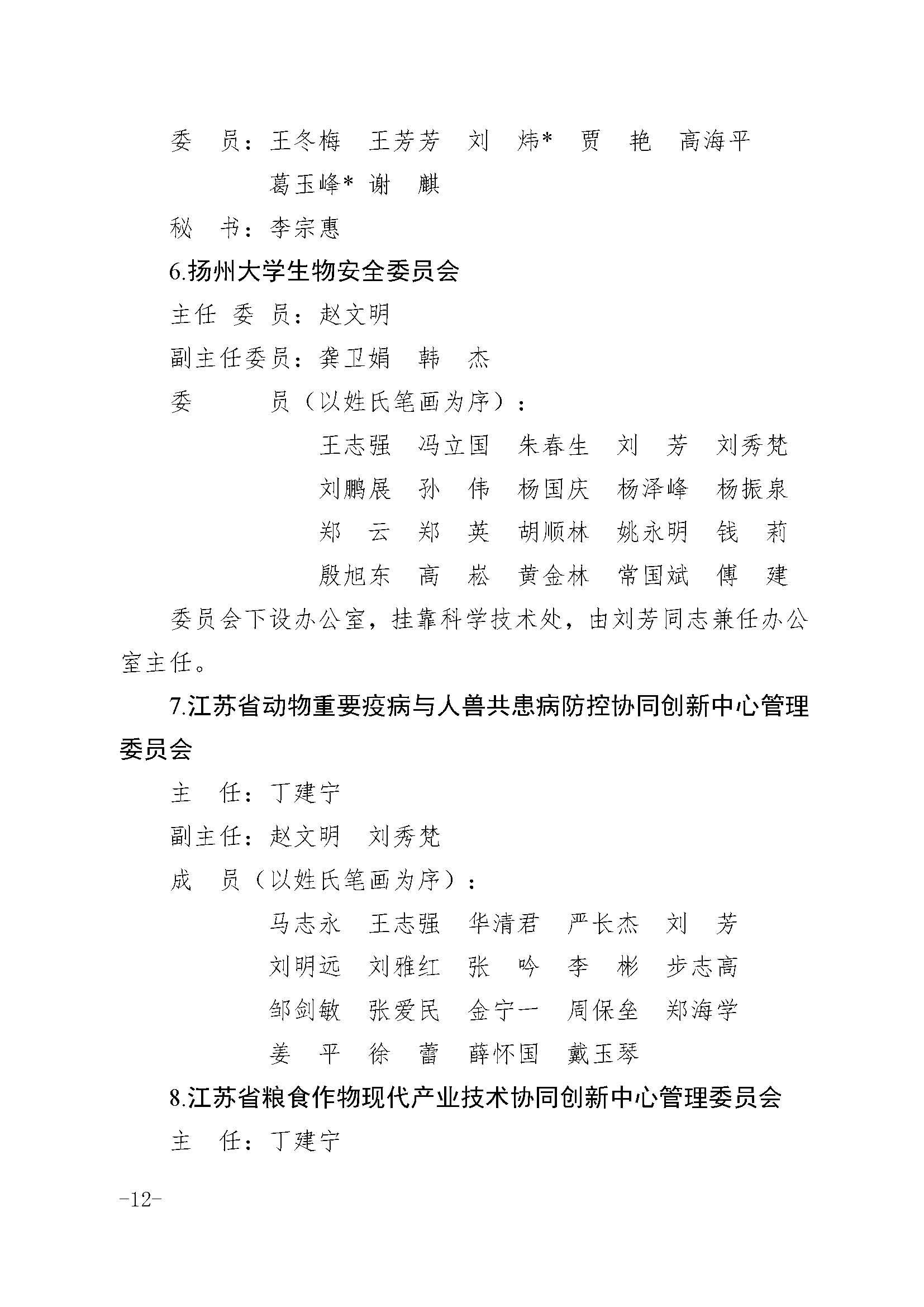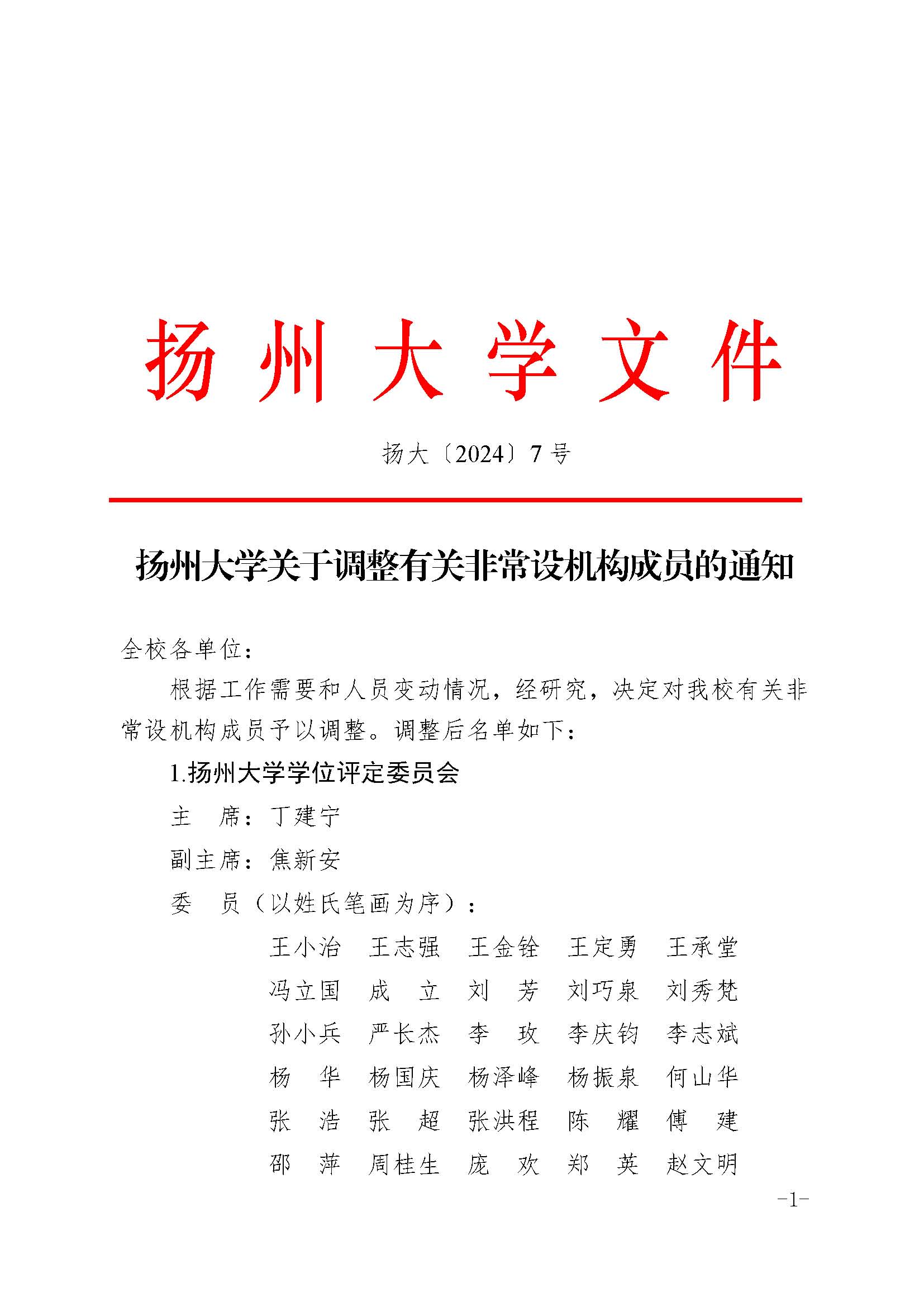 扬州大学关于调整有关非常设机构成员的通知