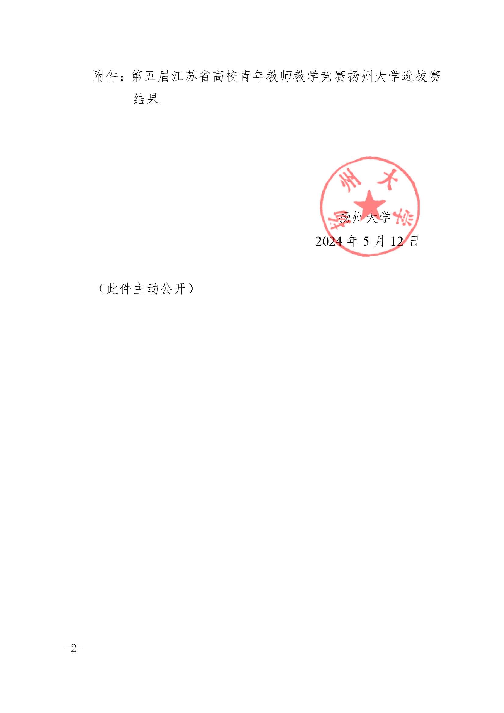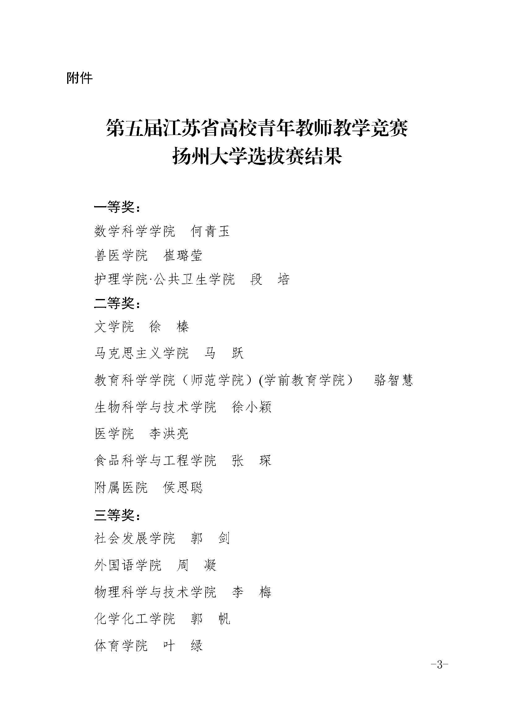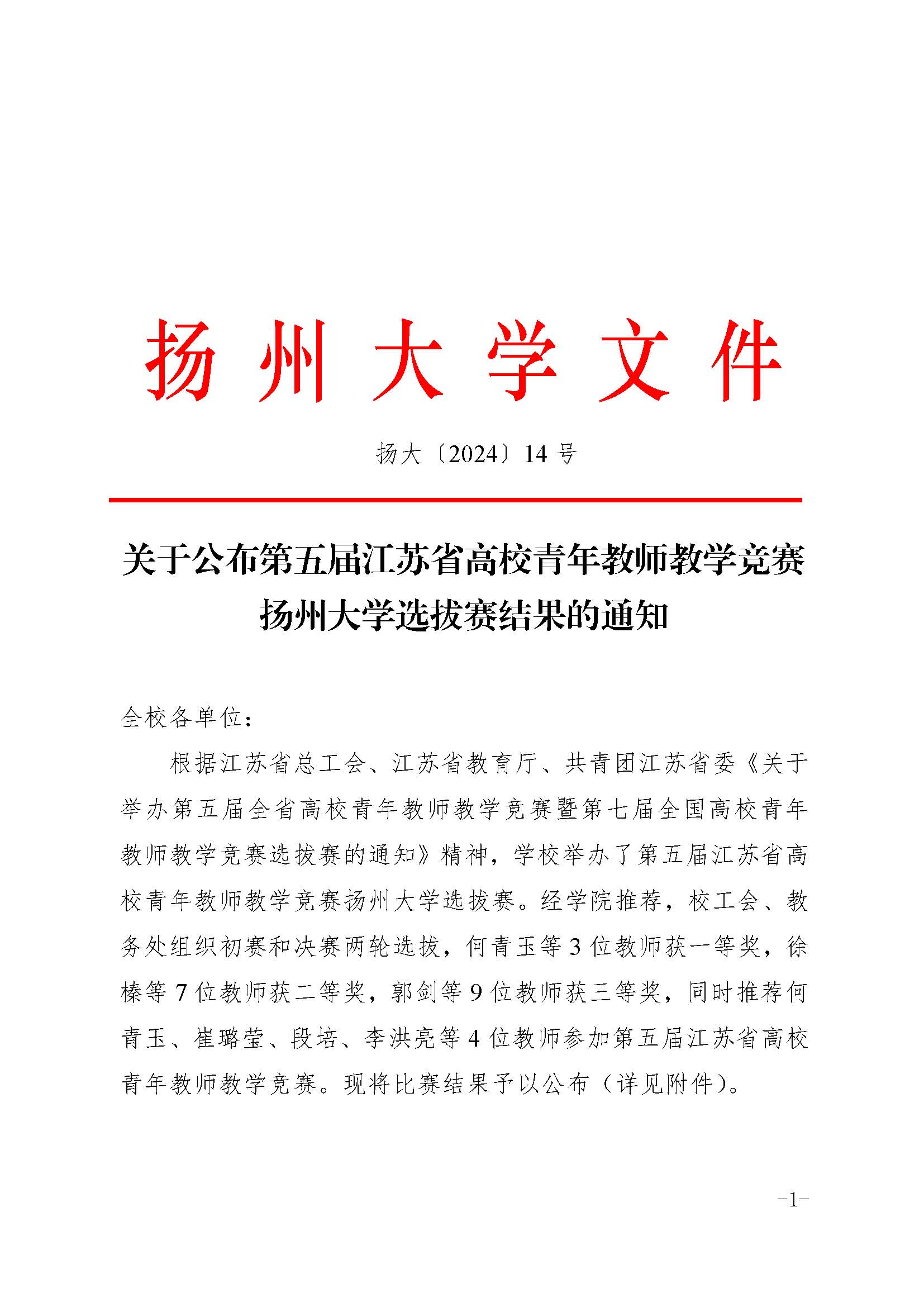 关于公布第五届江苏省高校青年教师教学竞赛扬州大学选拔赛结果的通知