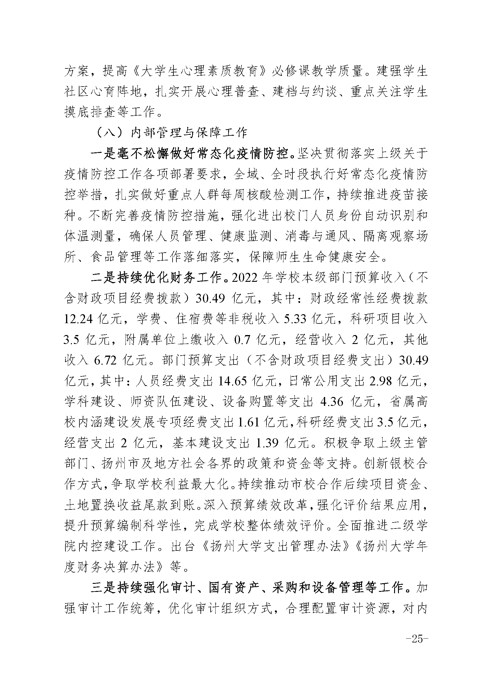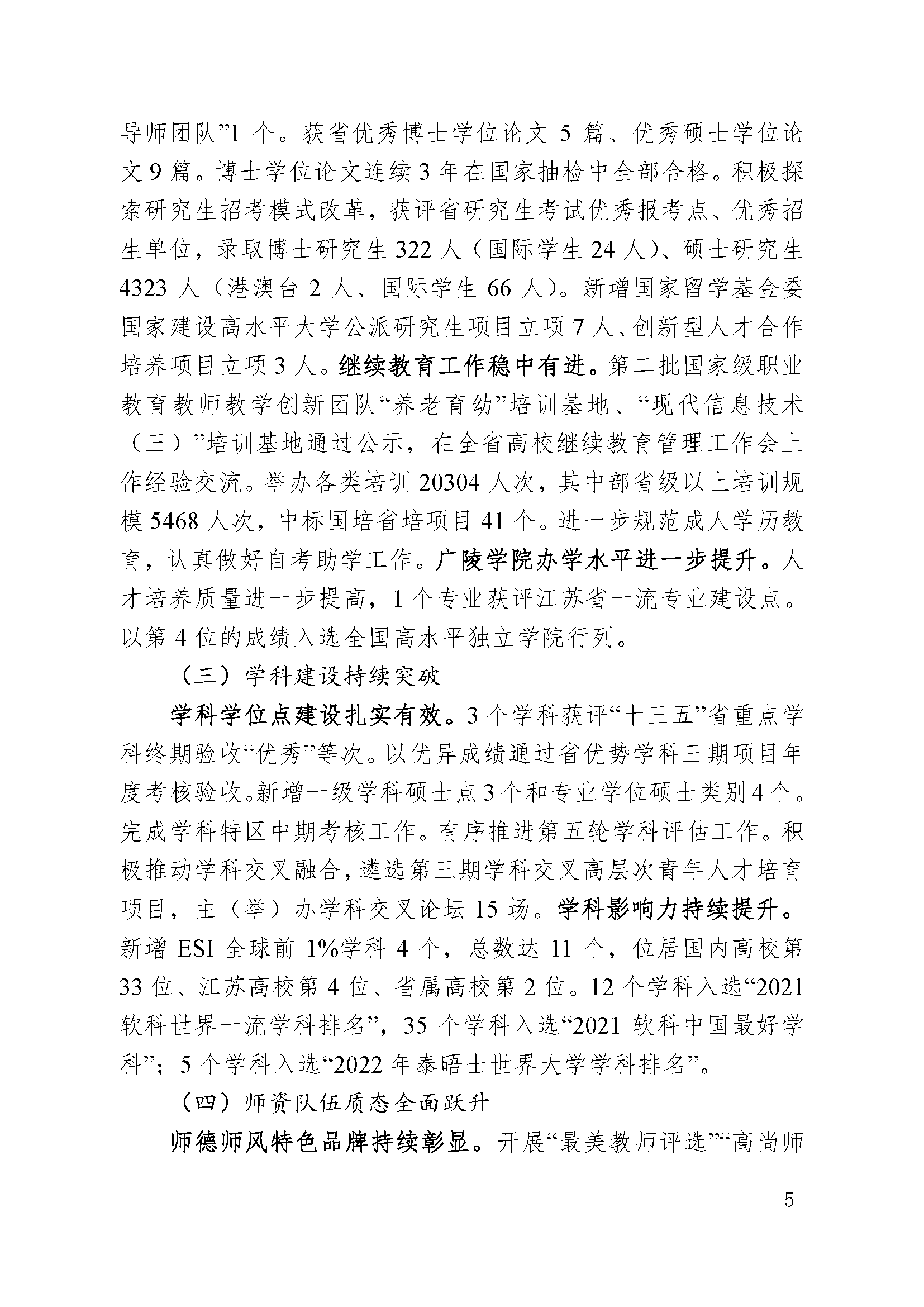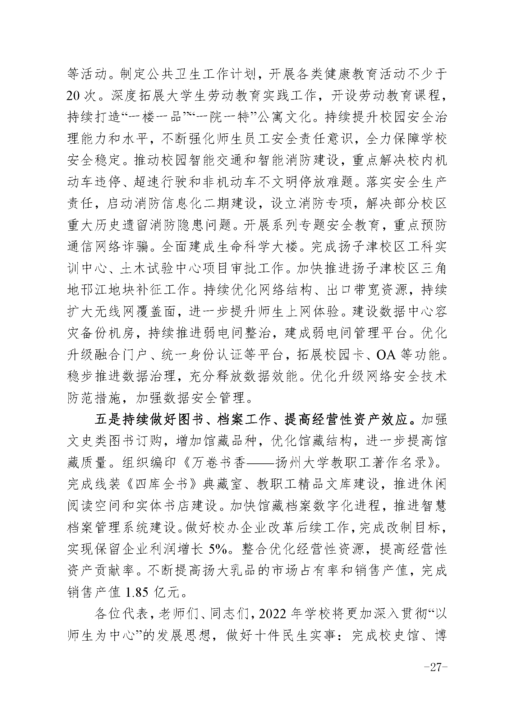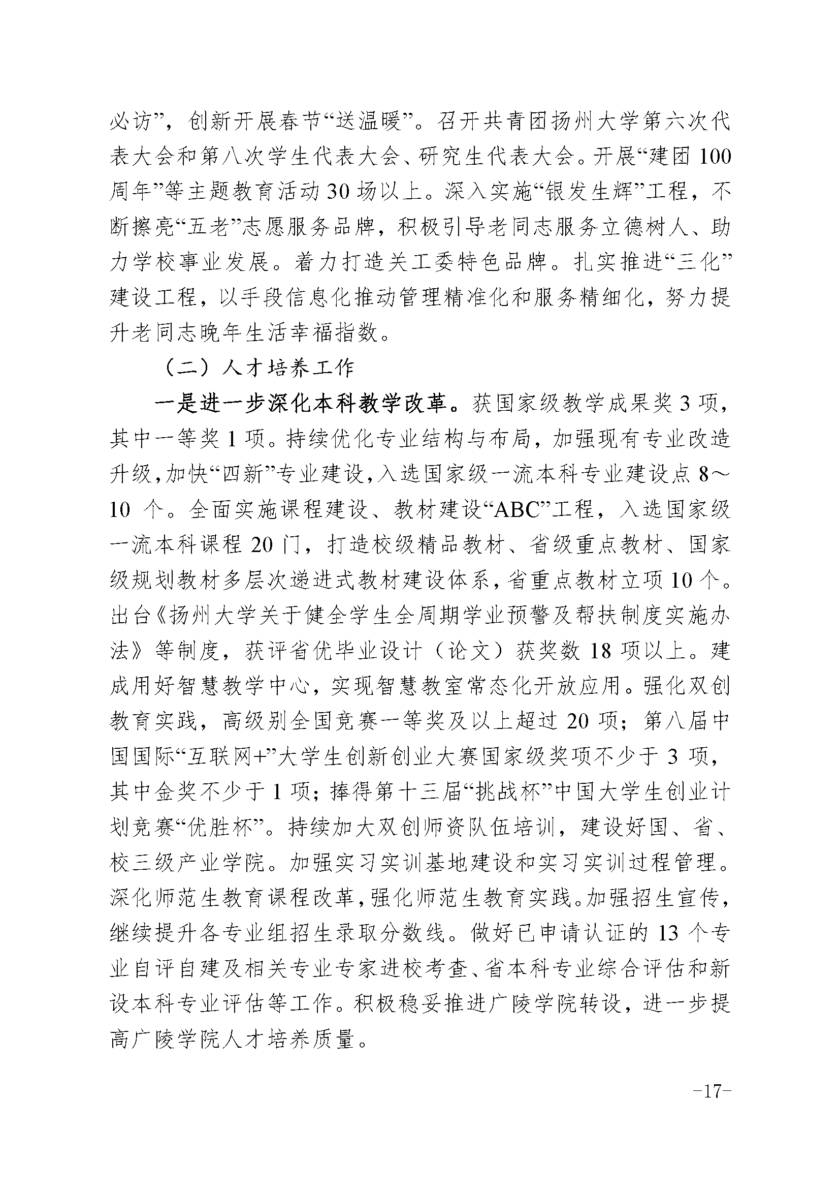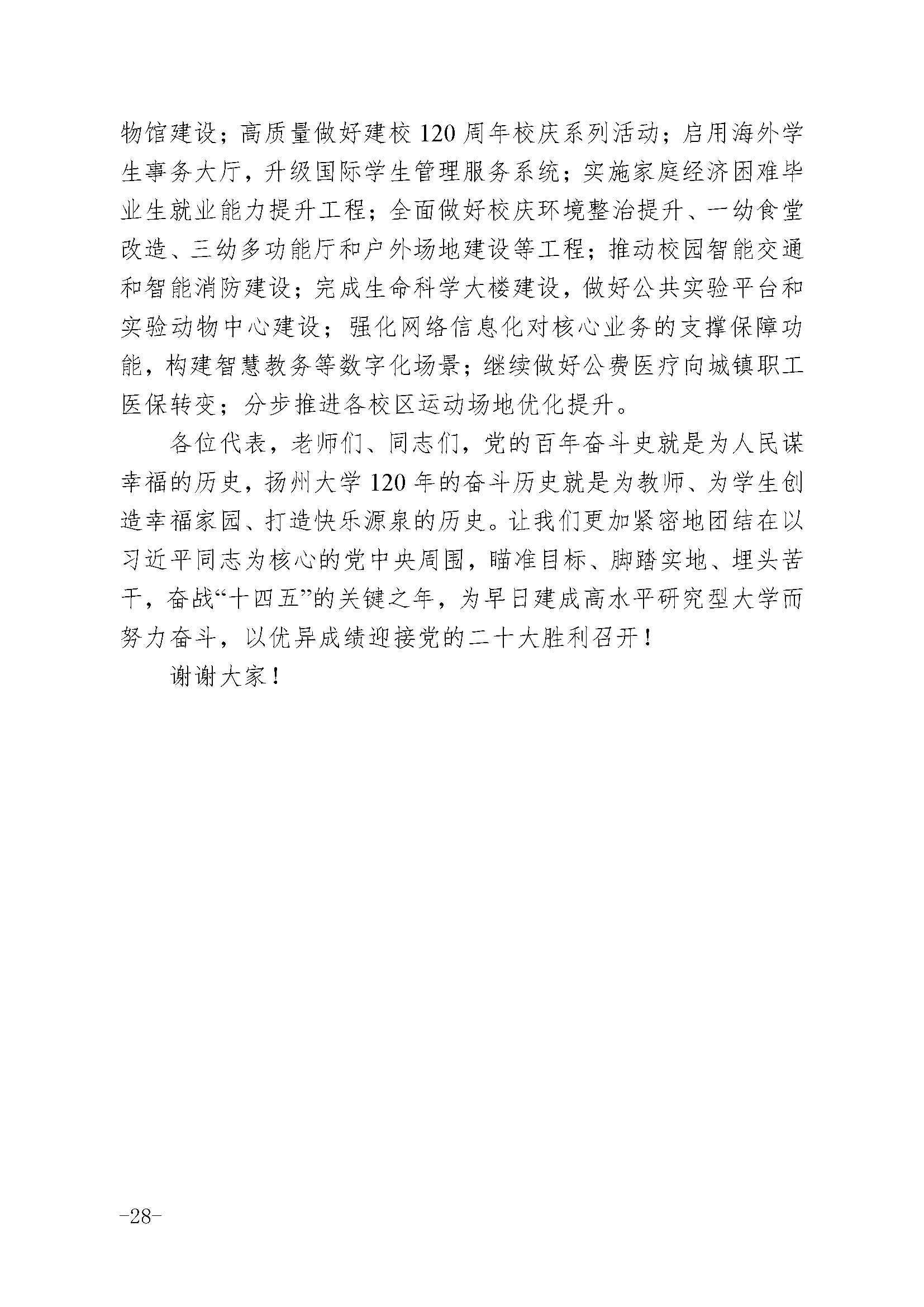 焦新安校长在扬州大学第五届教职工代表大会第三次会议上的报告