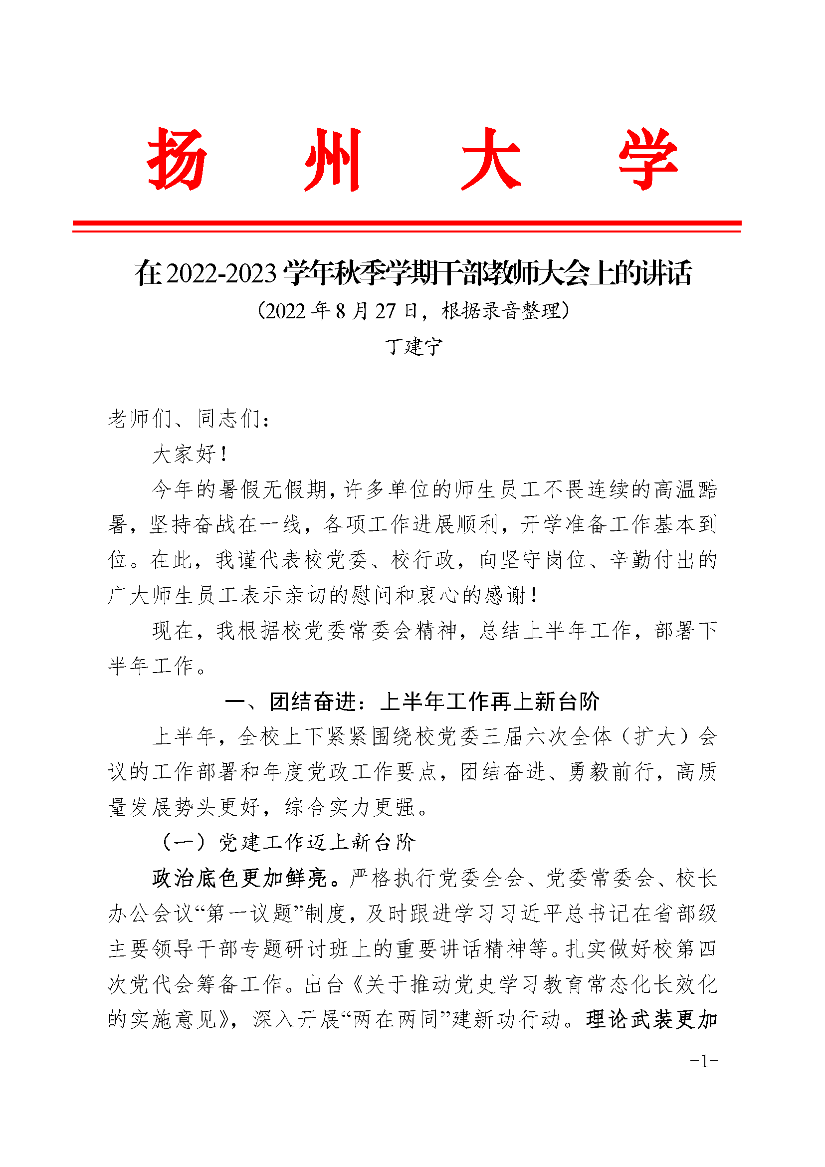丁建宁校长在2022-2023学年秋季学期干部教师大会上的讲话