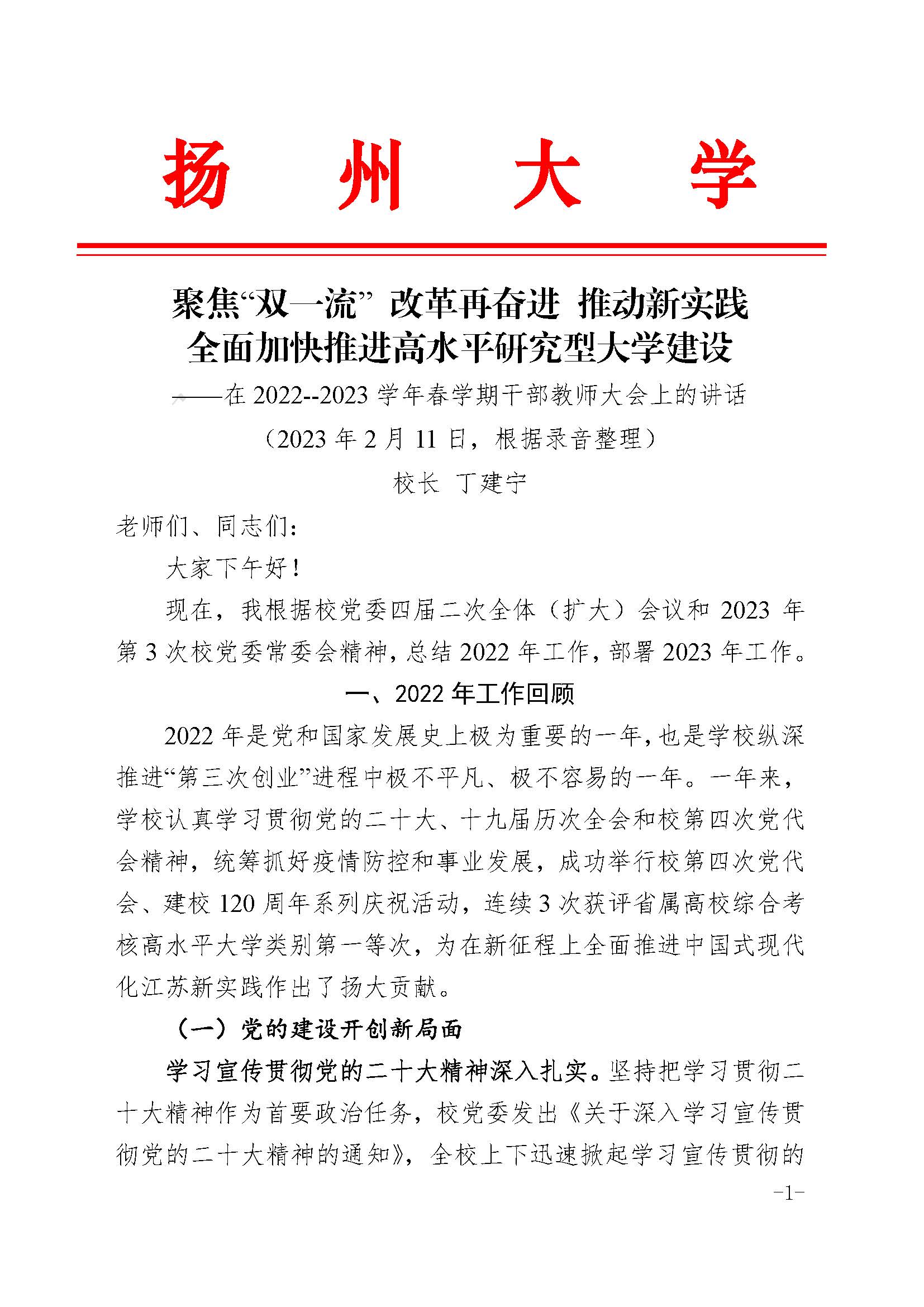 丁建宁校长在2022--2023学年春学期干部教师大会上的讲话