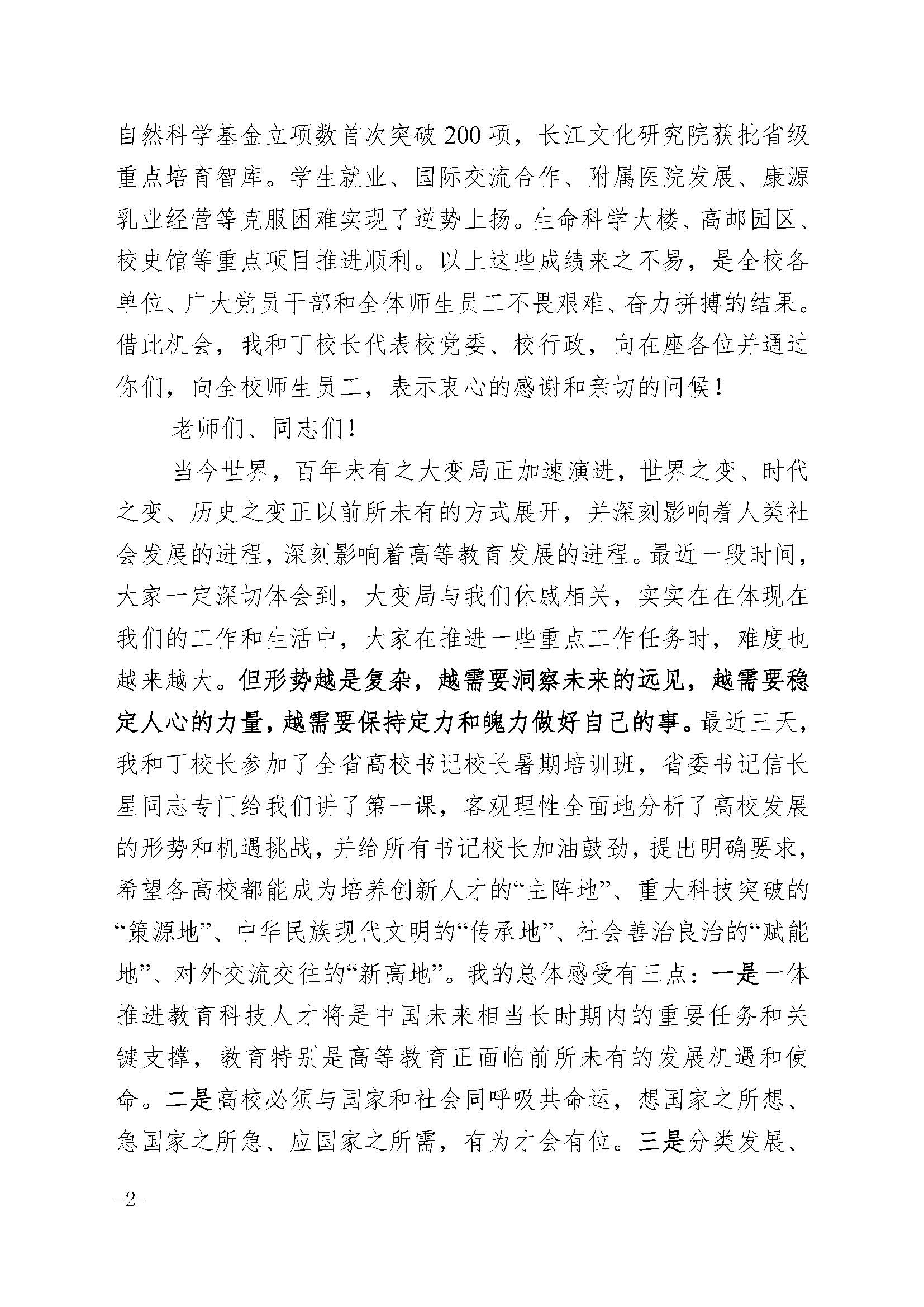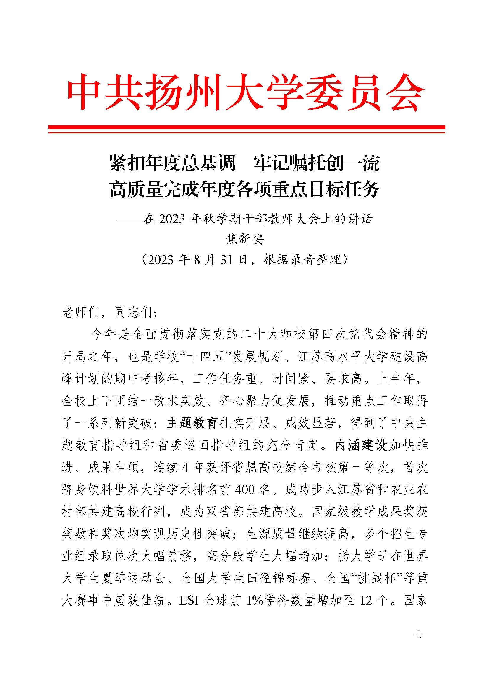 焦新安书记在2023年秋学期干部教师大会上的讲话