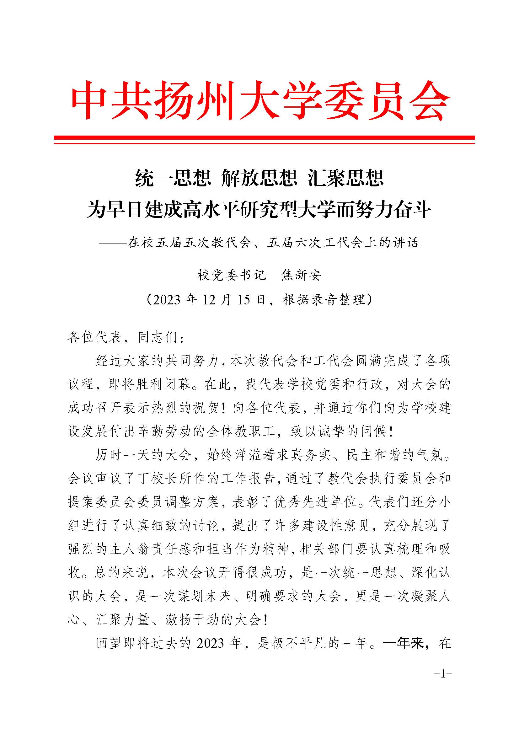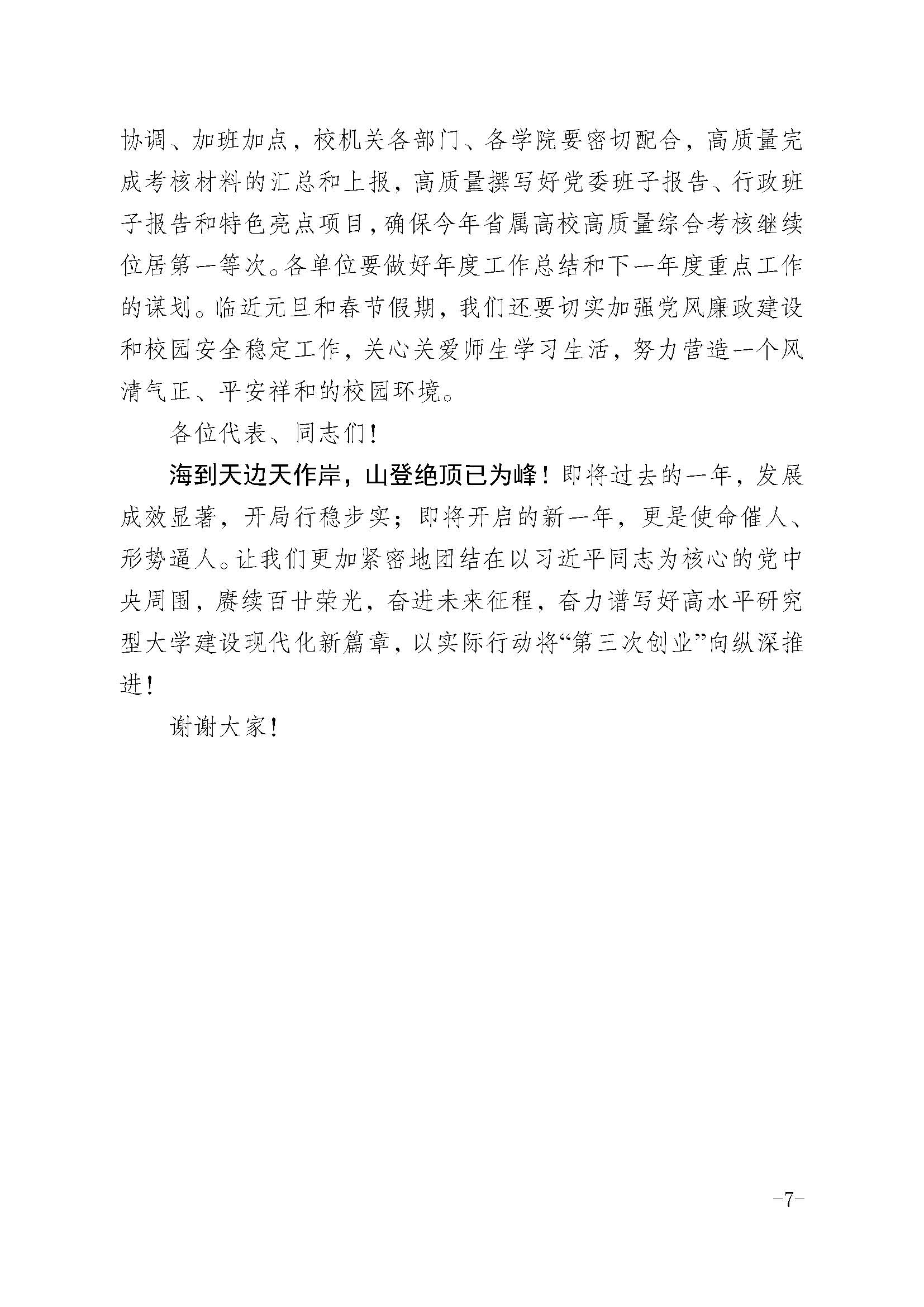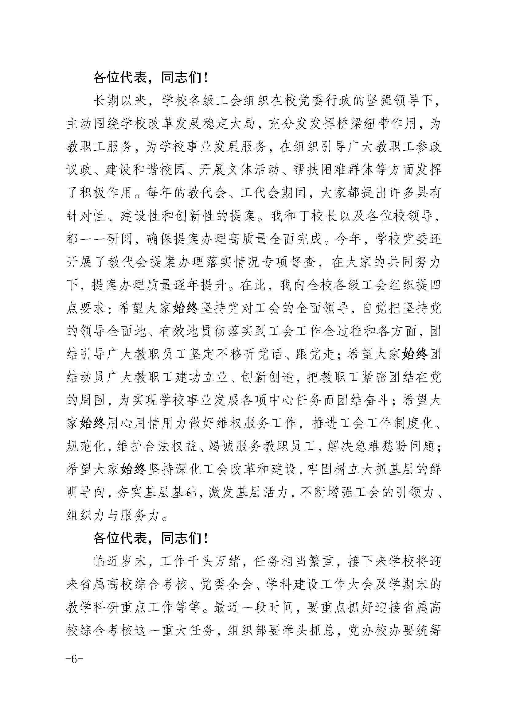 焦新安书记在校五届五次教代会、五届六次工代会上的讲话