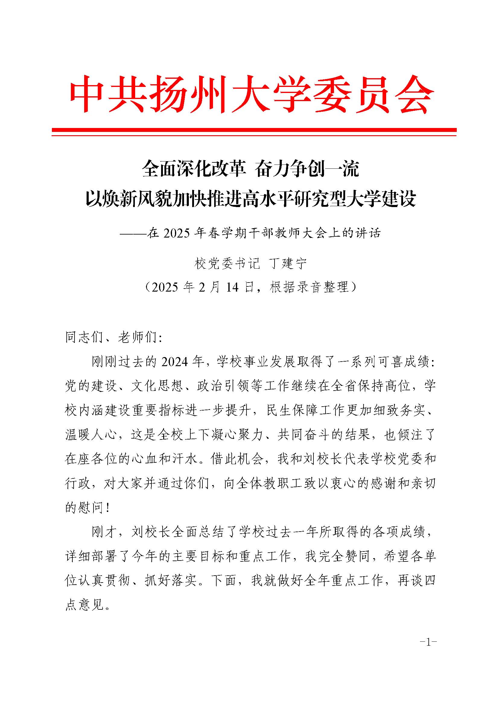 丁建宁书记在2025年春学期干部教师大会上的讲话