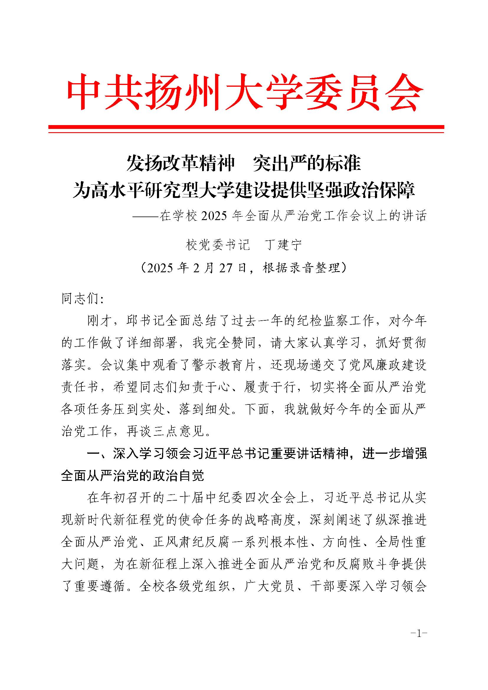 丁建宁书记在学校2025年全面从严治党工作会议上的讲话