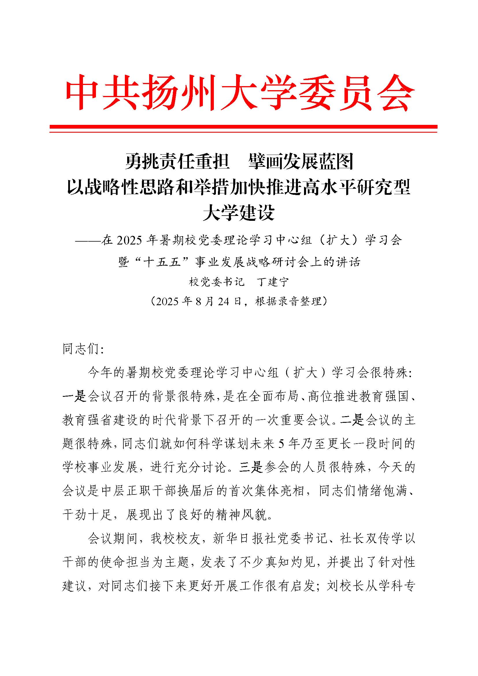 丁建宁书记在2025年暑期校党委理论学习中心组(扩大)学习会暨“十五五”事业发展战略研讨会上的讲话