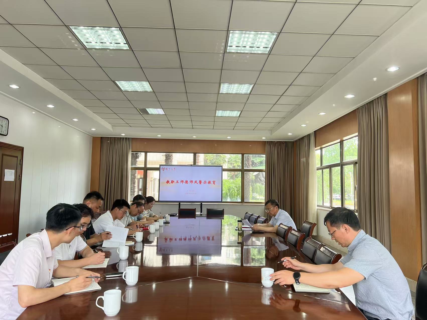 6月30日上午,校办党支部在行政楼101会议室开展师德师风警示教育,支部副书记、校办副主任毕亮主持会议。
